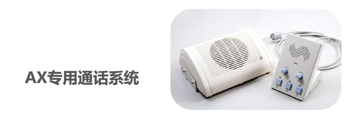 AX专用通话系统是一种用于X-Ray成像设备中的音频通讯系统,作为一个相对独立的功能子系统承担着与语音交流有关的全部功能。系统操作时操作者与患者可以进行语言交流,也可以向患者提供特定的语音信号或音乐,该系统还具有扫描室内监听和患者紧急呼救功能。